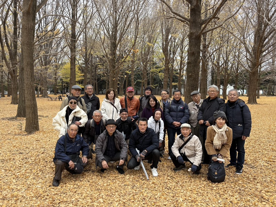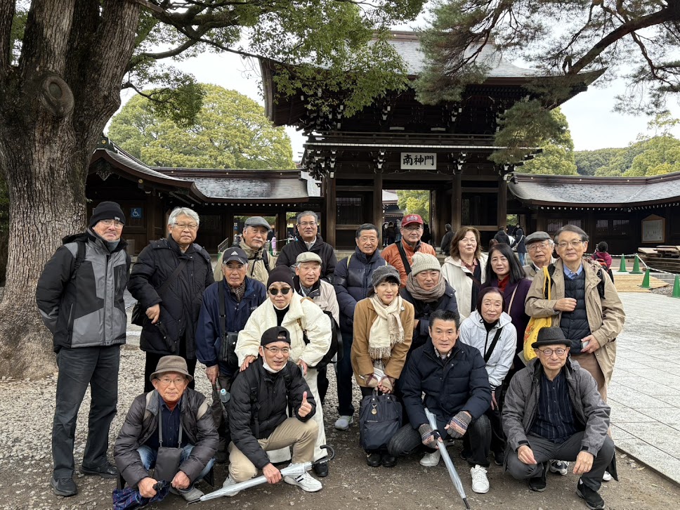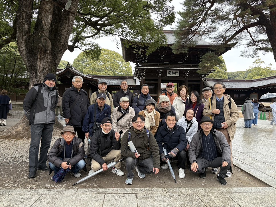 参加は21名 今回は2025年最後の月に、一年間事故なく怪我なく元気にお江戸さるき会を実行できたことへの感謝の意を込めて、明治神宮へお礼の参拝とコースを絞った次第