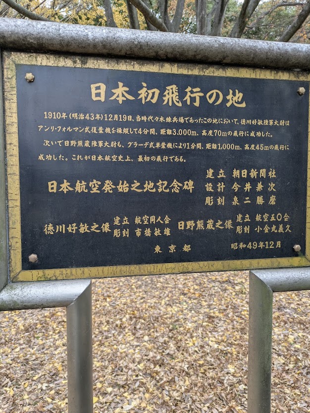 明治42年代々木練兵場開設の翌年(1910年)徳川・日野両大尉がわが国初の飛行