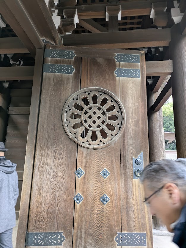 樹齢260~280年の吉野杉使用、菊の御紋は旧鳥居のものを張り直された